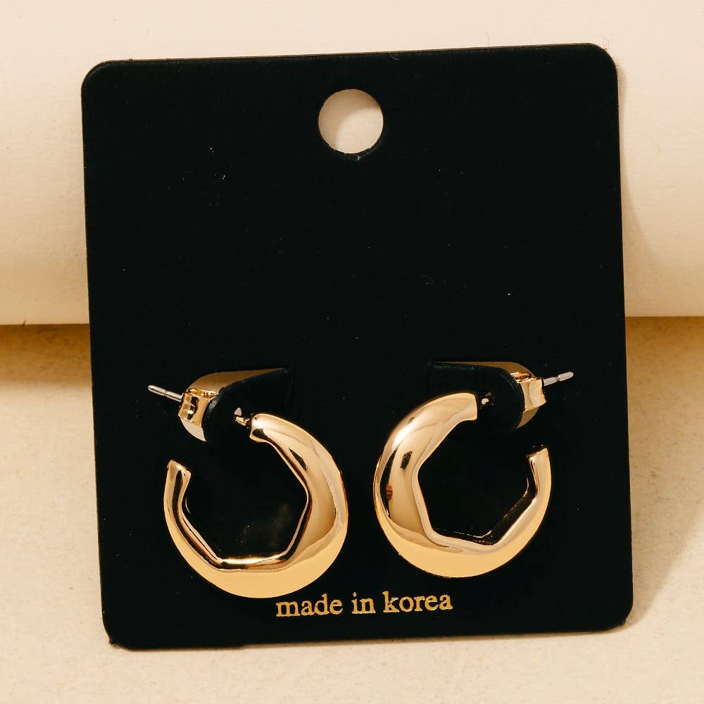 Effortlessly chic and sophisticated, this pair of hoop earrings evokes a captivating hexagon cut out rounded design. A versatile pair of hoop earrings that's perfect for any occasion, adding a touch of elegance and style to any outfit. Available in G, S. This item is sold in packs of 1. This pair of hoop earrings is made with 100% Zinc. Made in Korea.