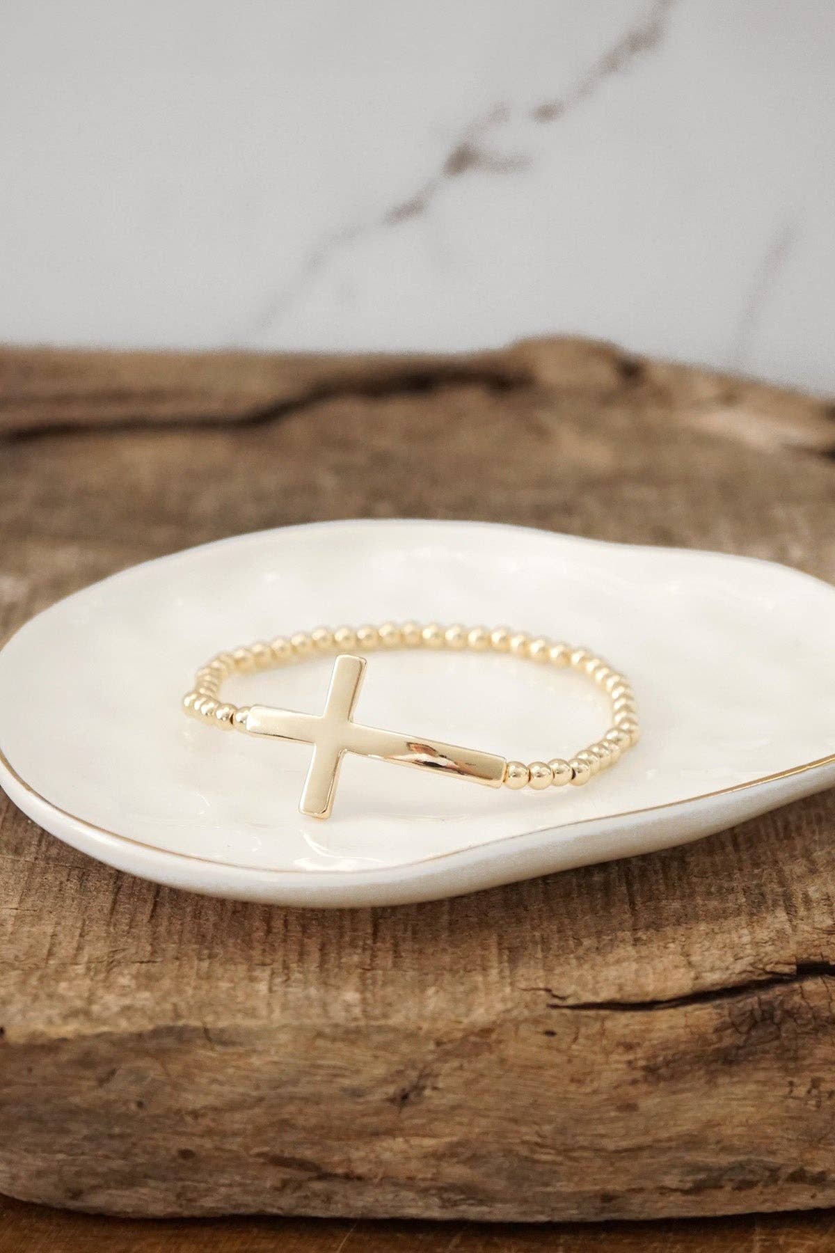 Minimal Cross Stretchy Bracelet in Gold tone with Ball Beads