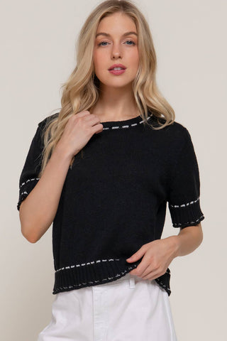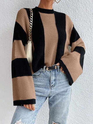 Flared Sleeves Long Sleeves Contrast Color Round-Neck Knitwear Pullovers Sweater Tops