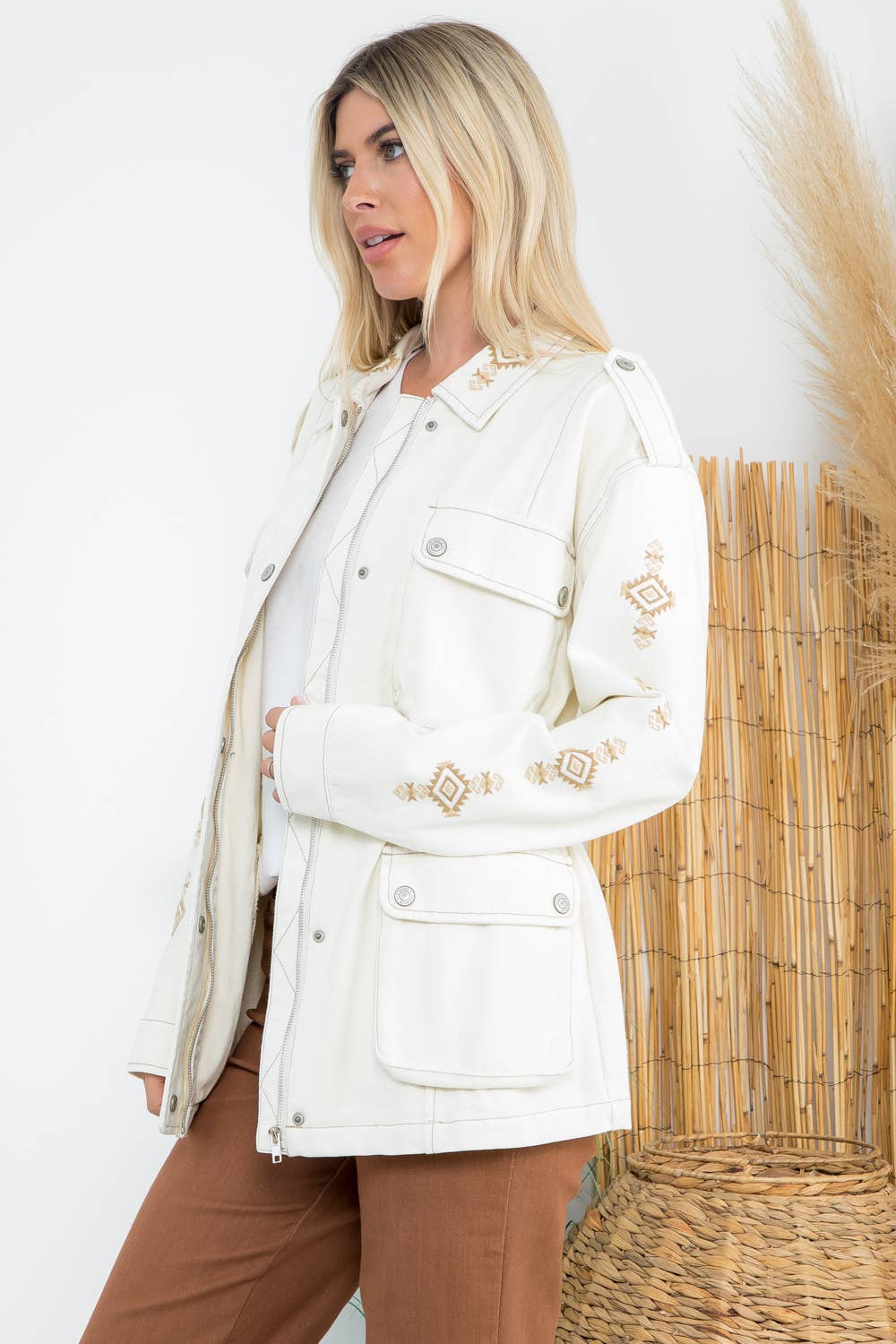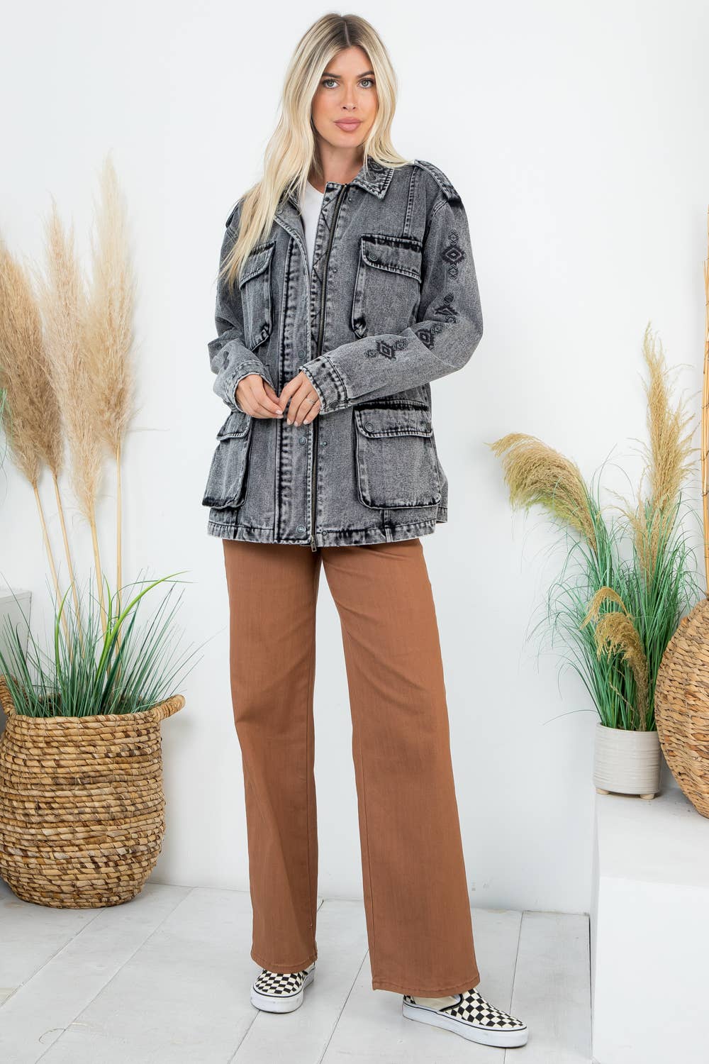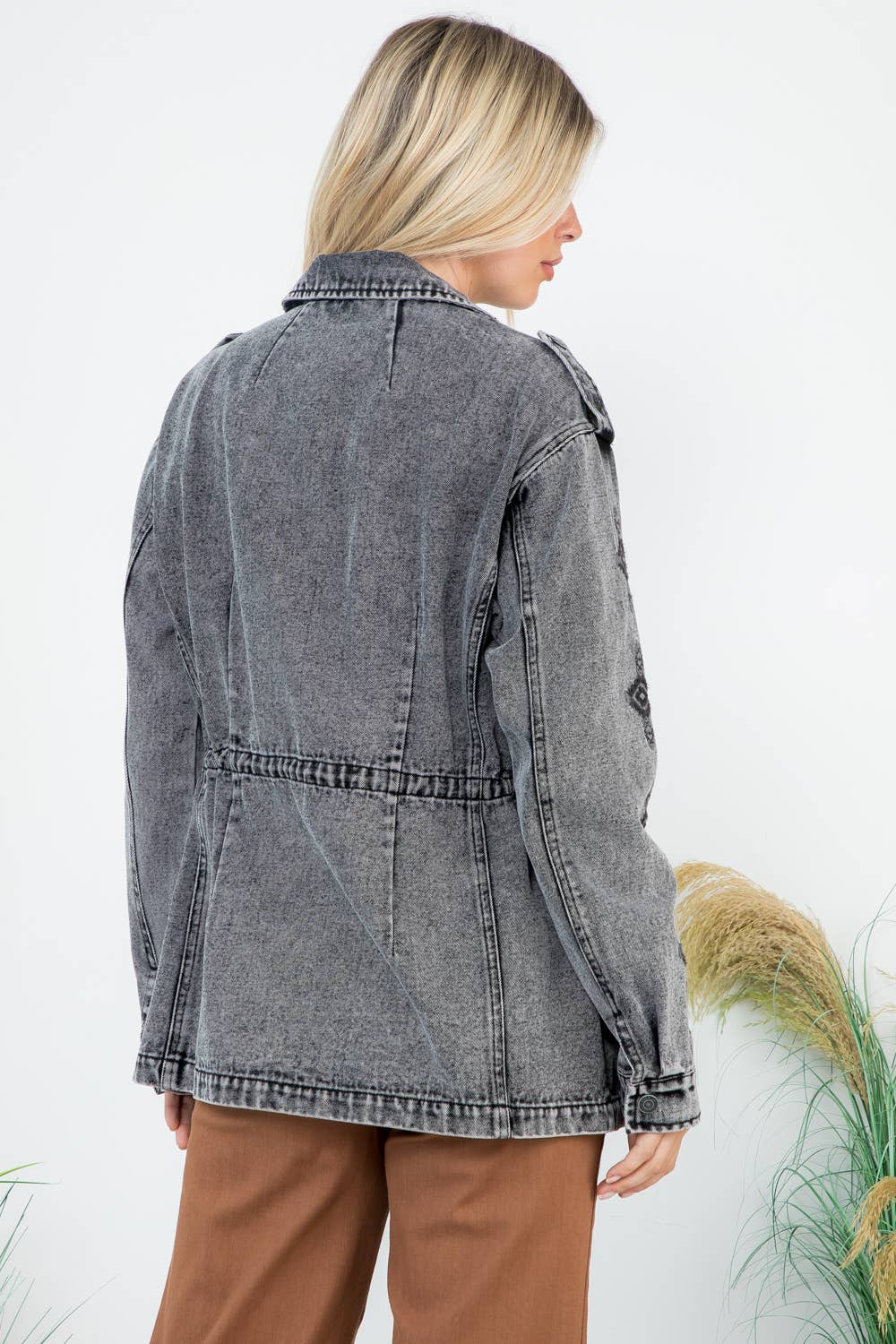 Stone Washed Anorak Jacket w/ Aztec Embroidery